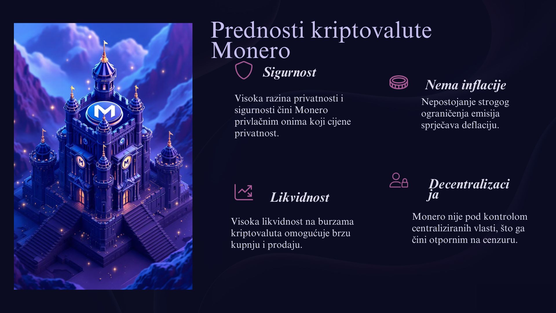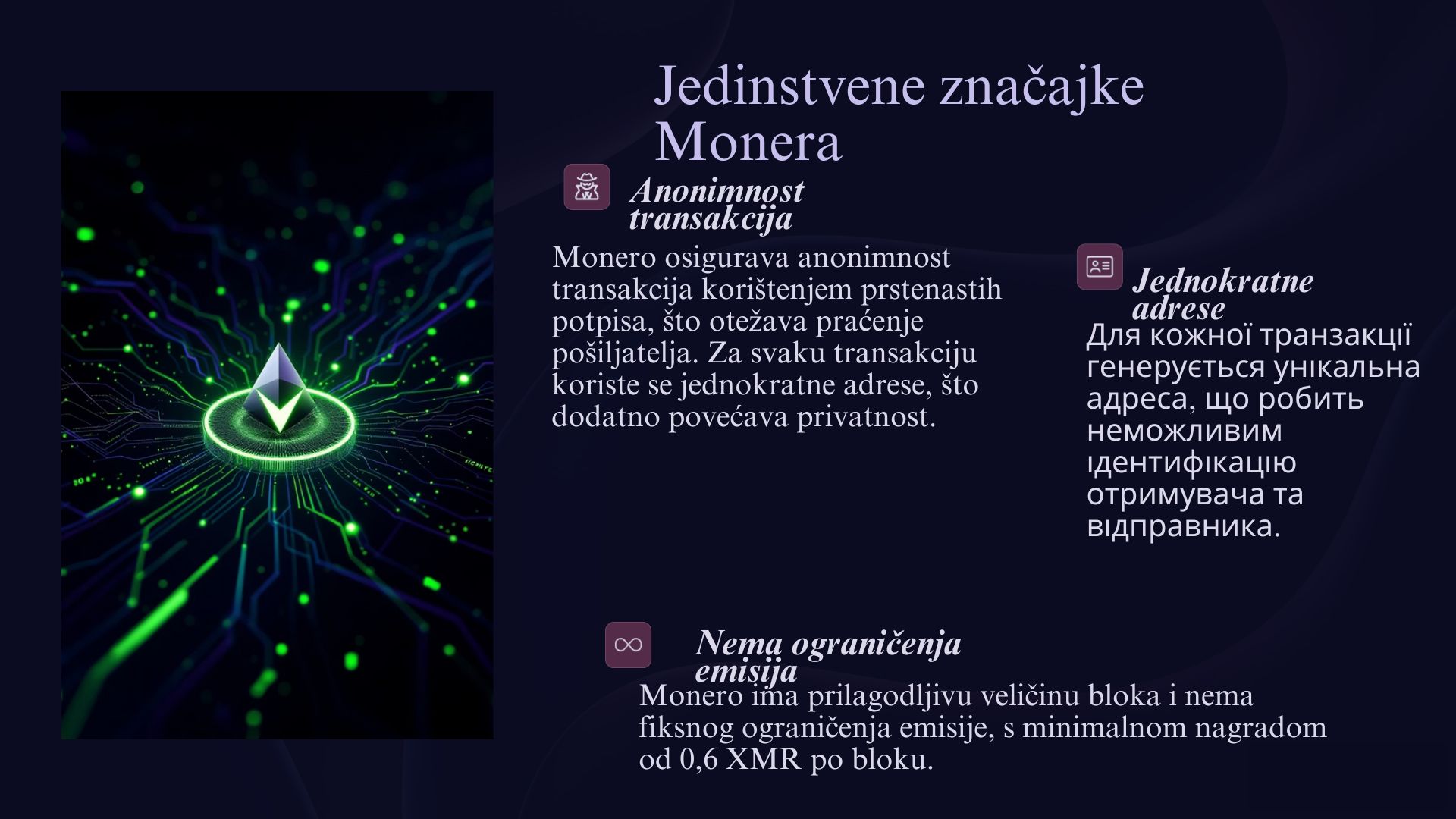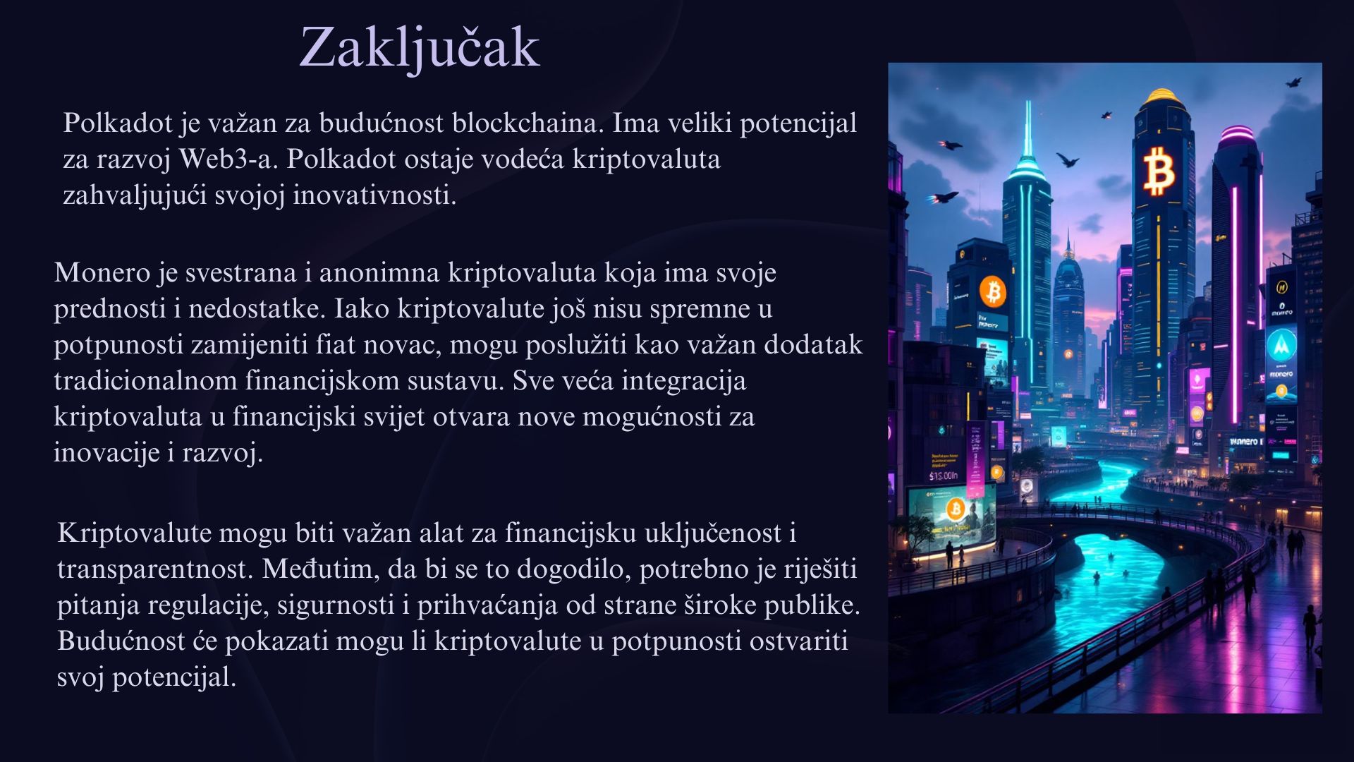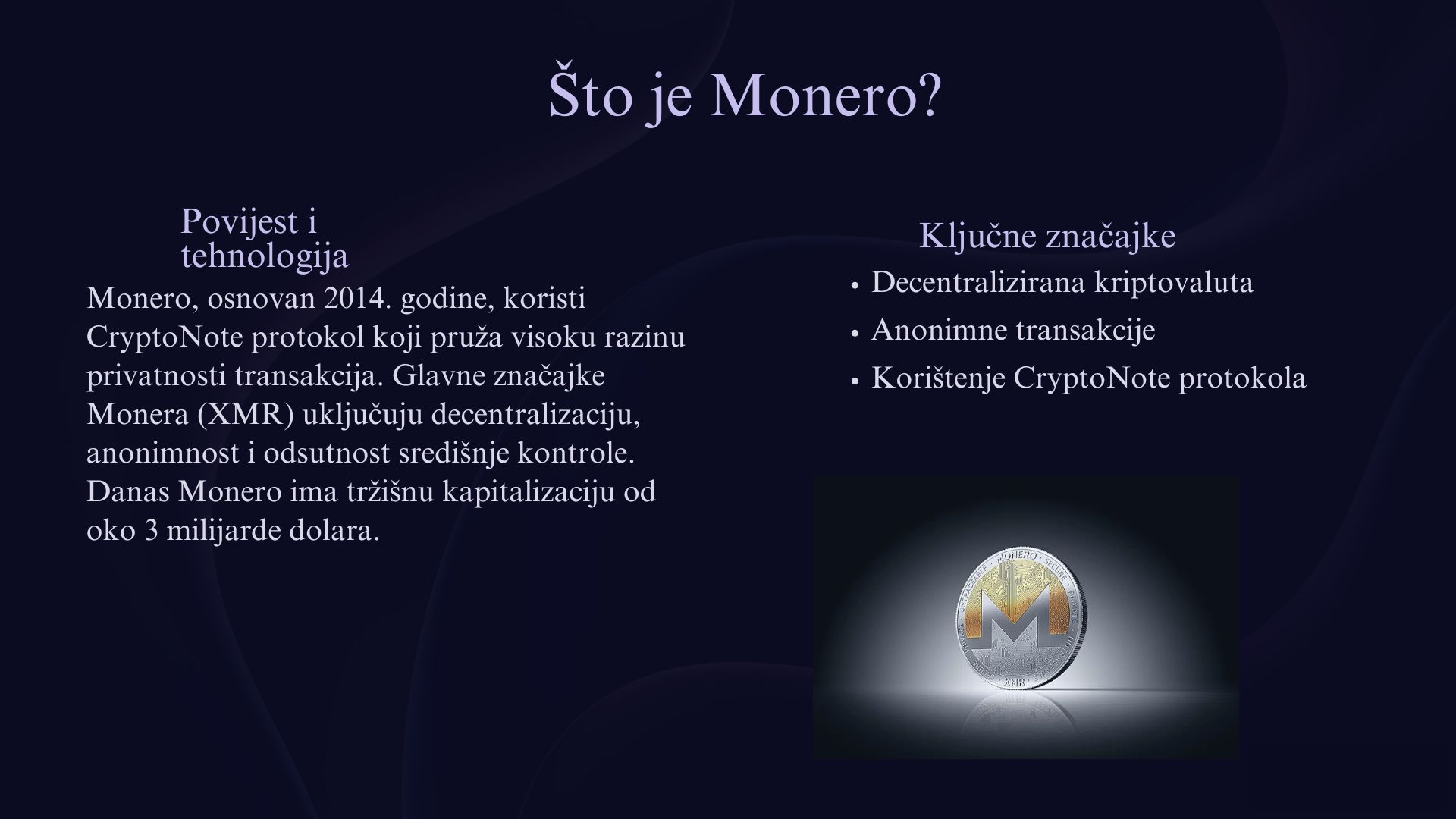 Monero i Polkadot su dvije kriptovalute koje nude specifične prednosti u svijetu digitalnih valuta. Kriptovalute su digitalni novac koji koristi tehnologiju blockchain za sigurne i decentralizirane transakcije. Monero je poznat po svojoj posebnoj sigurnosti i privatnosti, jer omogućava anonimne transakcije, čime korisnici mogu sakriti detalje svojih uplata i primanja. S druge strane, Polkadot je usmjeren na povezivanje različitih blockchain mreža, omogućujući im da međusobno komuniciraju i razmjenjuju podatke. Iako oboje služe različitim ciljevima, Monero i Polkadot predstavljaju inovacije koje mogu oblikovati budućnost kriptovaluta i decentraliziranih tehnologija.
